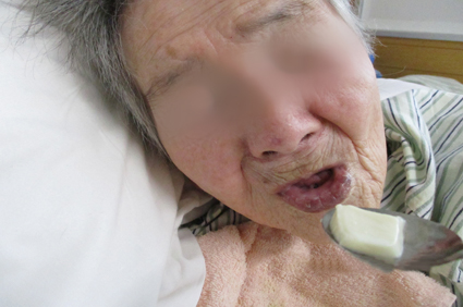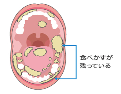 食事後は丁寧に口腔ケアを行い、口の中に残渣(残りカス)