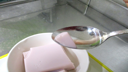 平スプーンでの介助も、ゼリーは崩さず薄くスライスしましょう。