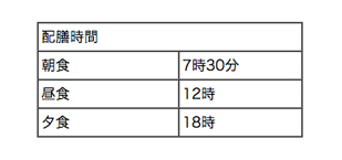 食事は病院給食になっております。病状によって献立が異なりますので、食べ物の持ち込みはご遠慮ください。