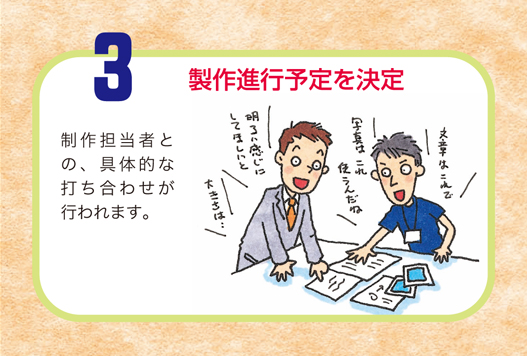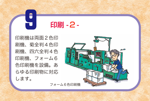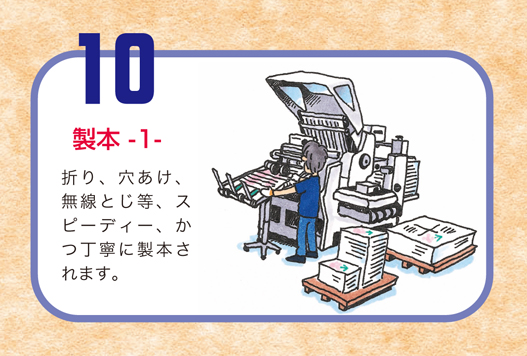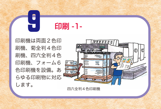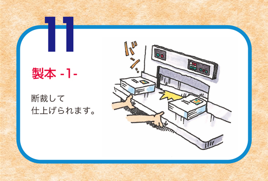 スライドアニメで、印刷物がどのように作られていくのかをご紹介しています。